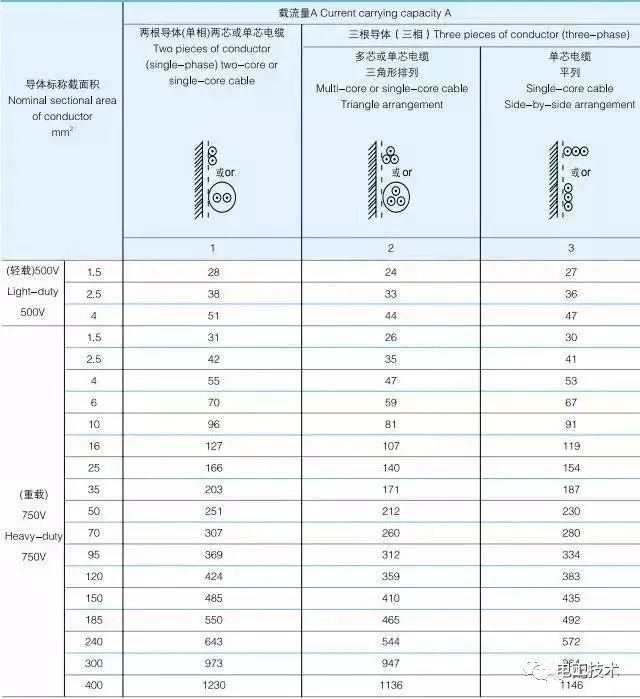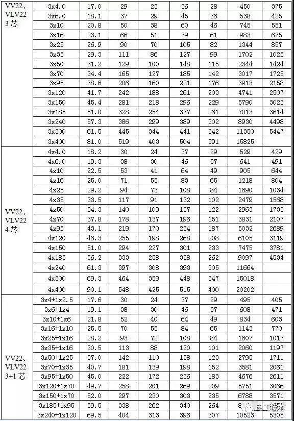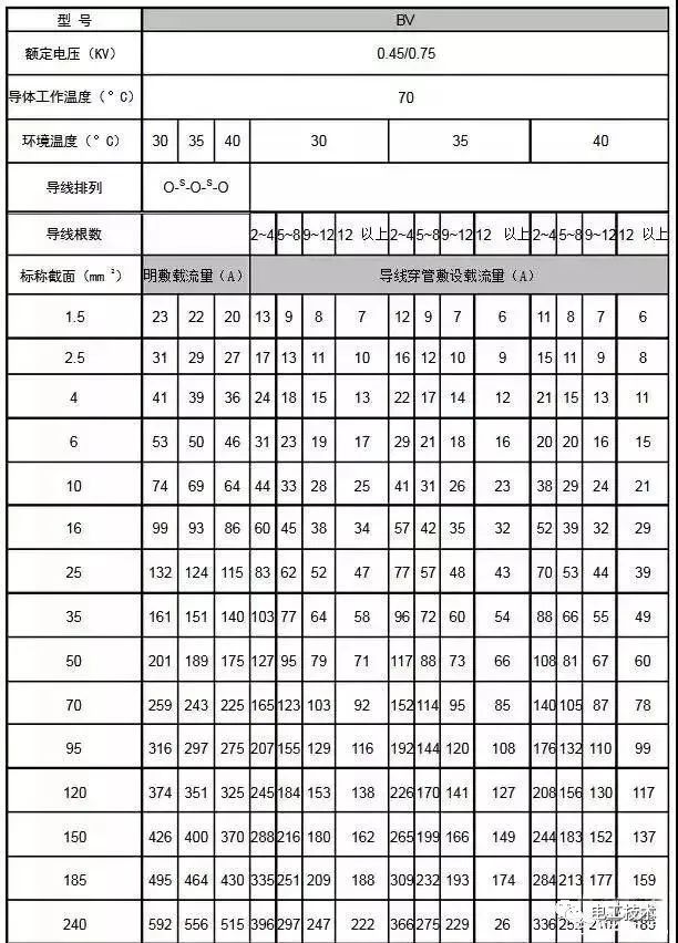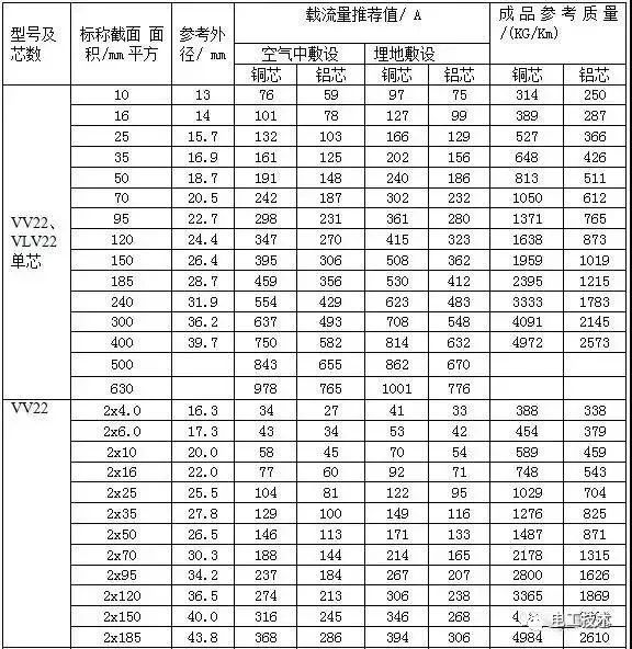 表中計算值為銅芯載流量。鋁芯載流量為銅芯的1/1.29倍