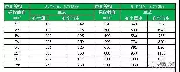 常見鋁芯電纜0.6/1kv-1.8/3kv電纜載流量表
