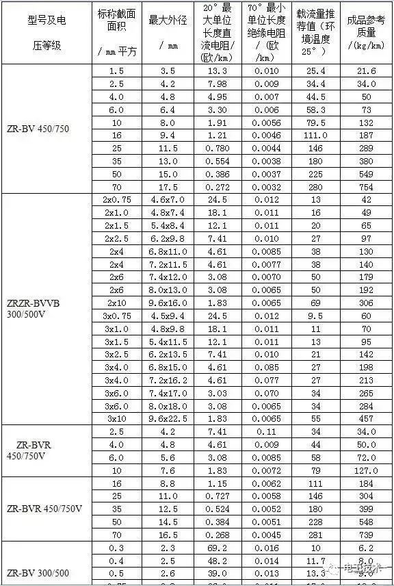 阻燃電線電纜載流量表                                                                      常見BV、BVVB、BVR、RVV、RVS系列阻燃電線電纜的載流量: